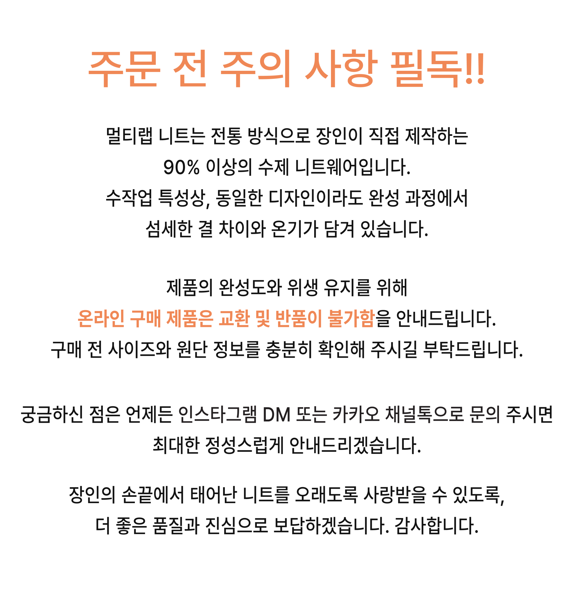 ※ 아래와 같은 경우, 어떠한 경우라도 교환 및 환불이 불가합니다. 반드시 주문 전 참고 부탁드리겠습니다. ※